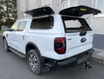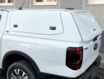 • In de praktijk betekent dit dat bij accessoires (bijv. hardtops) die boven de zijwand van de laadbak uitsteken en meer dan 45 kg wegen, de montage van een verstevigingsbeugel (J-beugel) vereist is. Het betreffende onderdeel is in het blauw afgebeeld op de afbeelding.