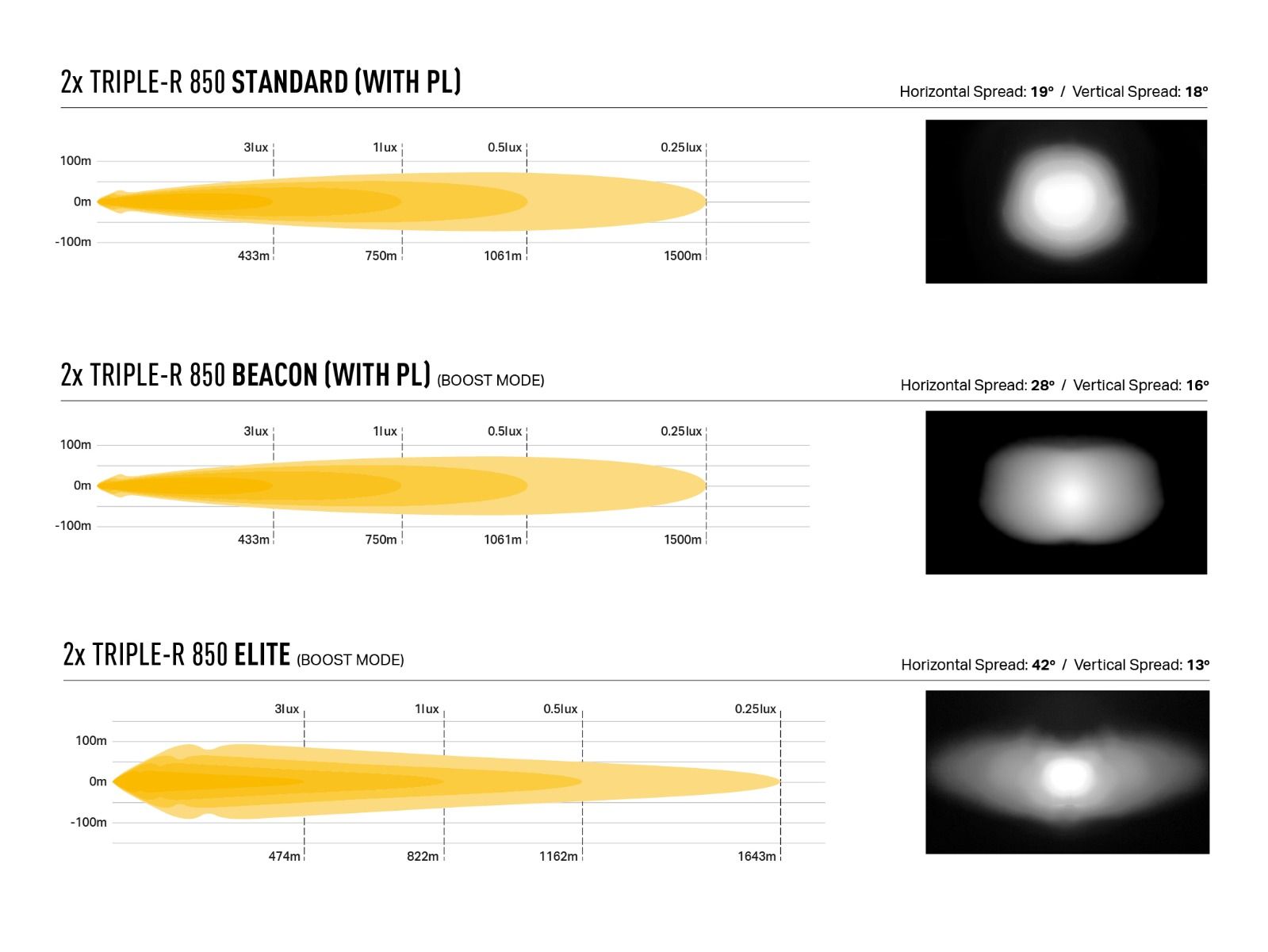 | 2x TRIPLE-R 850 | 2x TRIPLE-R 850 BEACON (BOOST MODE) | 2x TRIPLE-R 850 ELITE (BOOST MODE) | |