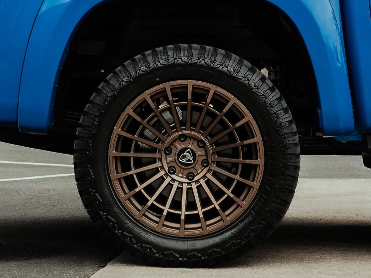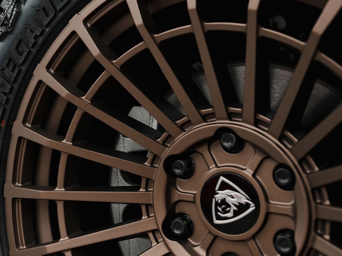 De brede offset van de Iconic, afgewerkt in brons, zal de look van uw Next-Gen Amarok transformeren.