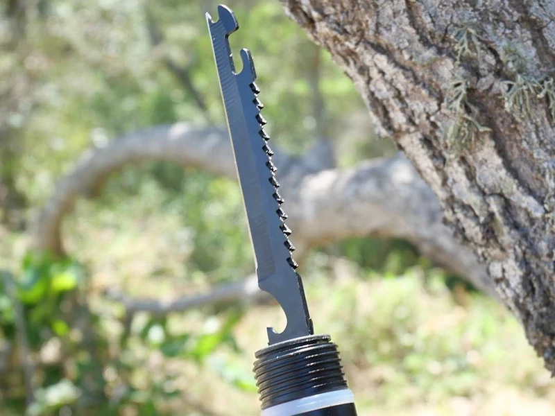 • Touwsnijder, zaag, hakmesfunctie op de kop